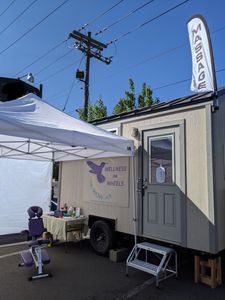 In the summer of 2020, after massage practices resumed business, Wellness on Wheels, aka The WoW Hub was delivered and stationed in the Multnomah Village French Quarter. With the established location of this food cart lot, with Jooley's experience as a self employed massage therapist and her loyal clientele base, she was able to keep the business moving forward. Now with the help of other practitioners who share the space of this tiny home during different hours, Wellness On Wheels has been successful in expansion. You can help us grow by booking an appointment or simply stop by to check it out sometime and tell your friends!